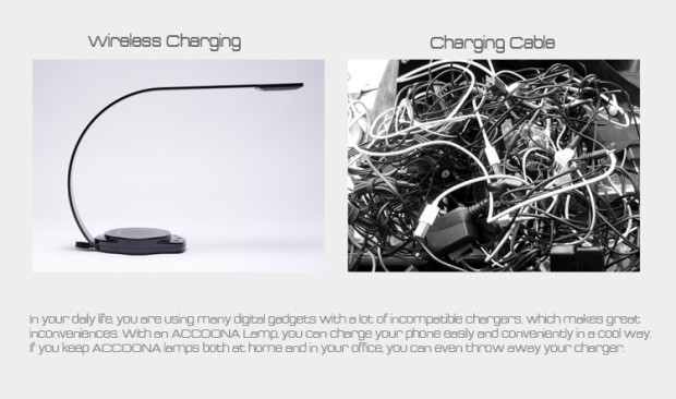 In your daily life, you are using many digital gadgets with a lot of incompatible chargers, which makes great inconveniences. With an ACCOONA Lamp, you can charge your phone easily and conveniently in a cool way. If you keep ACCOONA lamps both at home and in your office, you can even throw away your charger.