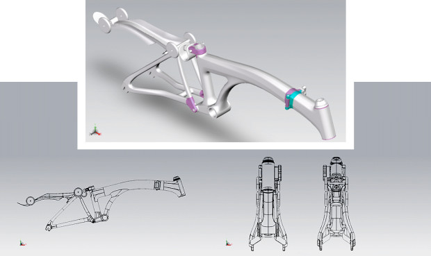 To reinforce and strengthen the frame to resist the twisting impact, we came up with a new design concept. A wall is inserted into the frame that gives more support that resists against pulling in one direction. This added a little weight, but it helped us to complete a dream bike that featured a one line carbon frame bike that does not shake while riding. We inserted this internal wall in main frame, handle post and seat post, and our chedech became more stable than initial models.