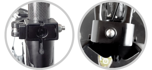 We completely understand where to use carbon and where to use metal. For the folding hinges, we used metal to keep it strong for folding movements. For the other frame parts we used carbon to keep the bike light and comfortable. In addition, we use a stronger carbon material for the parts connecting the metal hinge and carbon frames. This is done by adding extra chemicals, which make those linking parts stronger than the other carbon areas.