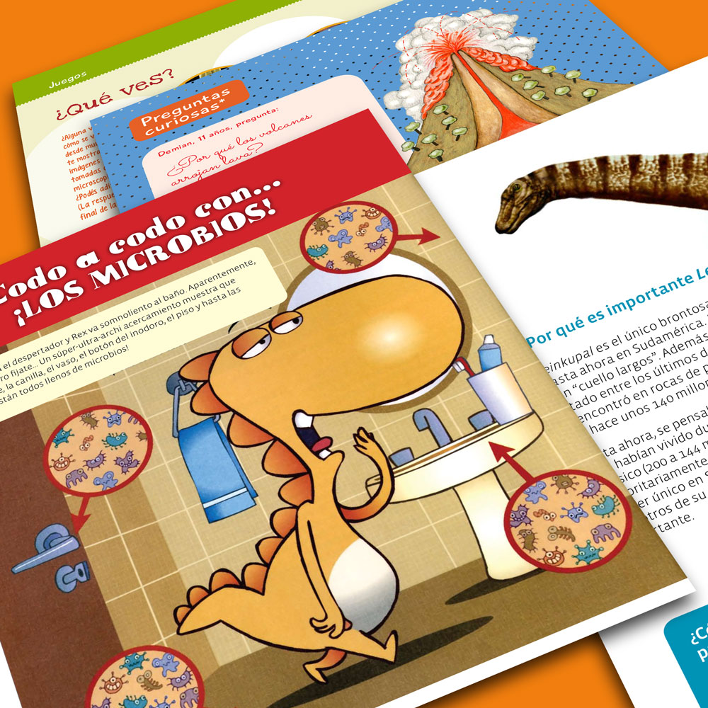 Una revista con secciones para todos los gustos: lo nuevo, ¿sabías qué..?, cocina científica, bazar, animales en peligro, juegos, preguntas curiosas, experimentos para hacer en casa y ¡mucho más!