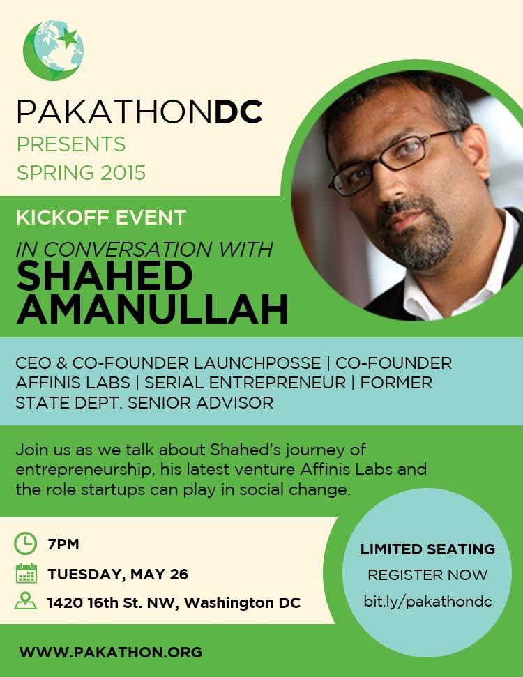 2. Be part of a global collaboration, make an impact in an emerging economy. Sign up to attend the event, be a speaker, mentor, participant or volunteer! For more information contact us at: pakathondc@gmail.com