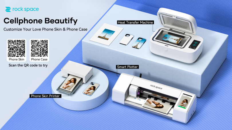 En abril de 2023, rock space lanzó dos nuevos productos innovadores para la «personalización embellecedora de teléfonos móviles»: una impresora de piel de teléfono para personalizar las películas traseras de los teléfonos y una máquina de transferencia térmica para personalizar las fundas de los teléfonos, que funcionan con la máquina de corte de películas de rock space para ayudar a los consumidores a lograr la personalización in situ y ayudar a las tiendas a atraer clientes